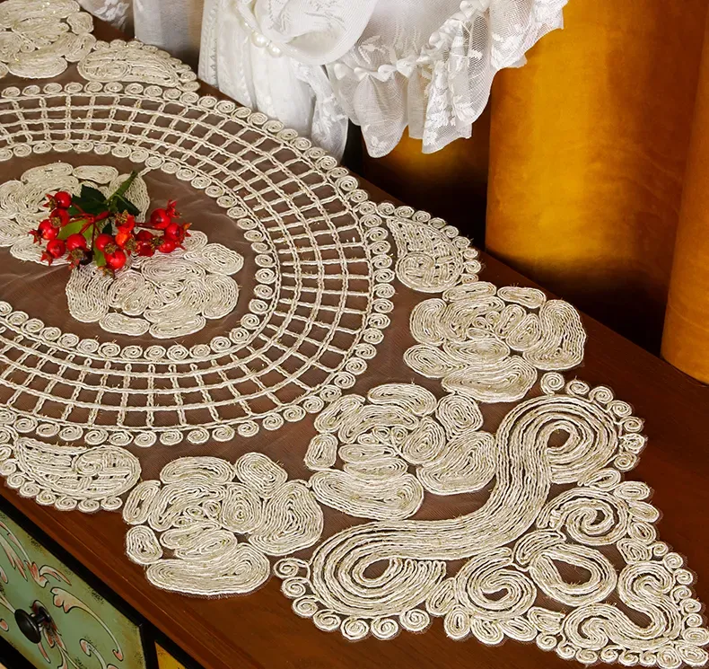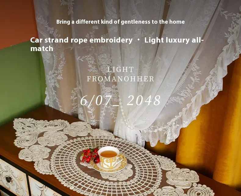 Discover our range of Elegant Tulle Embroidered Table Runners that bring a refined touch to your home decor. These runners are made from a soft tulle fabric and feature subtle rope embroidery, enhancing the aesthetic of your tables without overpowering the space.