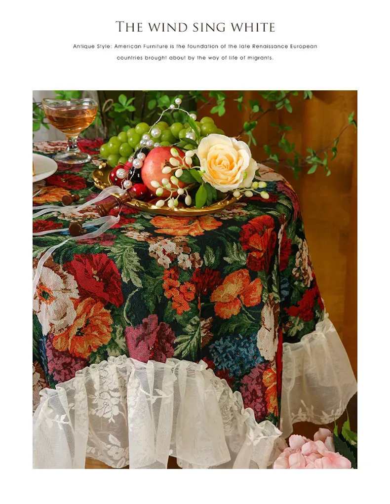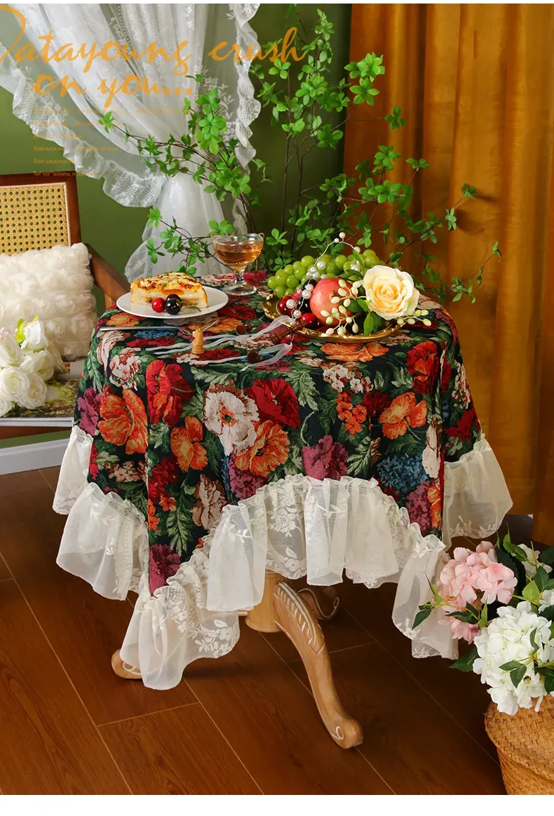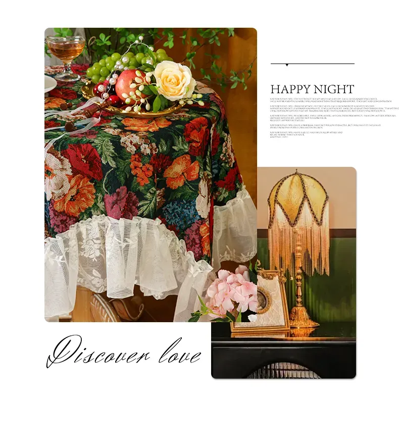 Elevate your home decor with style! ✨ This vintage floral fabric tablecloth is perfect for round and square tables, adding a touch of luxury and charm to any room. Shop now for your festive upgrade! 🎄🛒